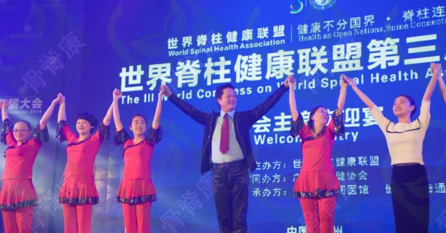 世脊联第三届大会由世界脊柱健康联盟授权广州市荔港国医馆、健强一指通集团承办 ,广东省保健协会联 办,40多家理事单位协办。