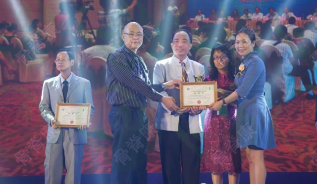 16日17:30举行闭幕式及颁奖典礼,张寿生(广东省卫生厅原副厅长、广东省保健协会执行会长)出席闭幕式并致词,广东省保健协会作为本届大会同办单位,给予了大会极大的支持与帮助,张会长对大会的成功举办表示非常欣慰与肯定。世脊联第三届大会奖励评审会主委暨世脊联常务副主席金泽明先生介绍了金手奖的产生规则、今年颁发的奖项。金手奖被称为“脊柱界的奥斯卡奖”,本届大会共颁发出4个奖项,分别为:最佳影响力奖——龙层花(龙氏治脊疗法宗师)、最佳影响力奖——王福根((解放军总医院、第二任中华入医学会疼痛学会主任委员)、最佳教育培训奖——刘金田(世脊联副主席、西安脊柱康复学院院长)、最佳青年星光奖——郑昆(世界脊柱健康联盟理事、正大健康产业集团董事长、中国脊柱养生专家)。